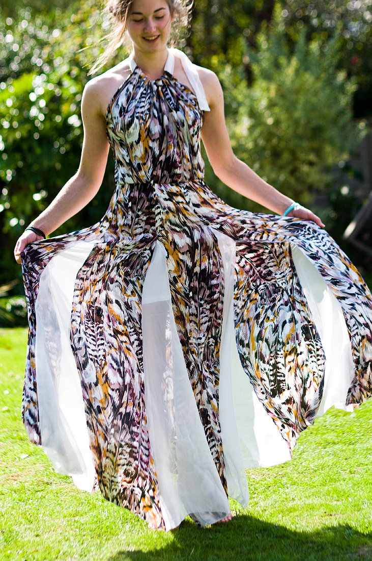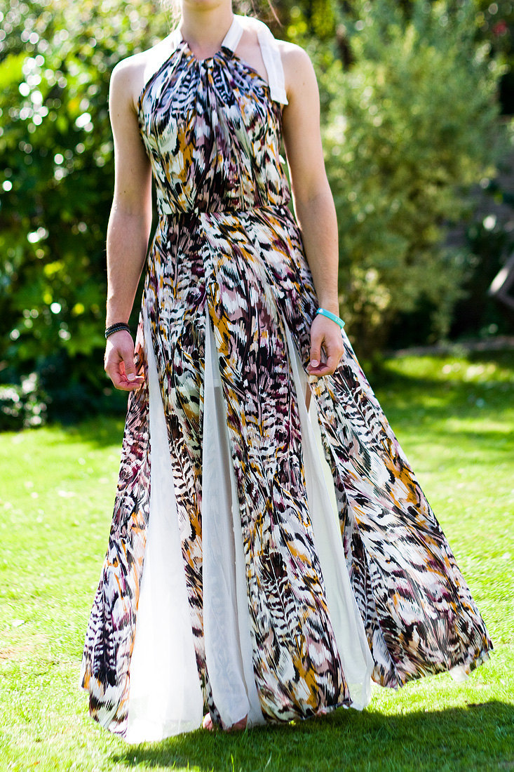 Made for a summer ball by the sea this dress has a lovely floaty feel and is actually incredibly comfortable! I enjoyed figuring out the contrasting insert panels in the skirt and used the plain chiffon as the neck tie too.